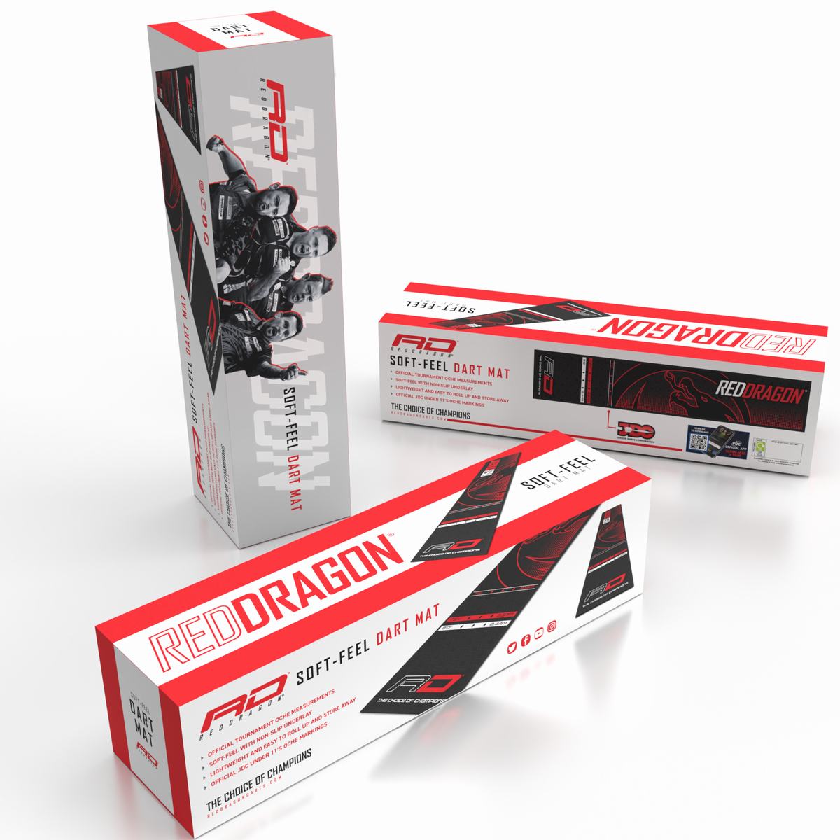 Modernes, sportliches Design. Schwere Anti-Rutsch-Matte (ca. 5 kg) mit weicher Oberfläche mit offiziellen Turnier Oche Abmessungen