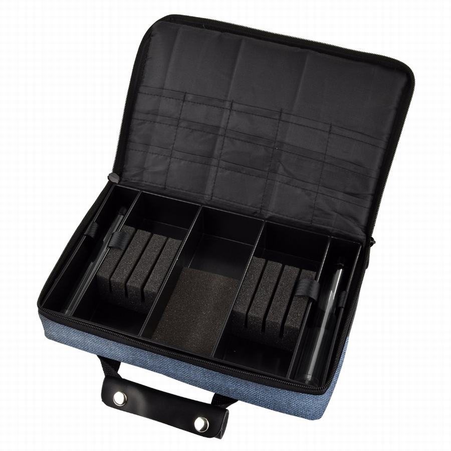Master PAK – seit Jahrzehnten die beliebteste Luxus Dartasche für den anspruchsvollen Soft- und Steeldartspieler. Die Kulttasche THE MASTER PAK ist ab 2023 auch in angesagter Jeans Edition erhältlich. Die äußerst stabil verarbeitete Tasche mit einer Kunststoffschale ist mit strapazierfähigem und pflegeleichtem Polyestergewebe im Jeans-Look umhüllt. Die große, praktisch konzipierte Tasche mit Schaumstoffeinteilungen für bis zu 3 Satz montierter Darts bietet in seinen zahlreichen Fächern zudem ausreichend Platz für weiteres Zubehör. Der Tragegriff ist aus hochwertigem PU-Leder, liegt äußerst angenehm in der Hand und ist absolut robust. Das Karella Logo auf den zwei Reißverschluss-Zips sowie der „Master PAK“ Sticker stehen für das legendäre Original.