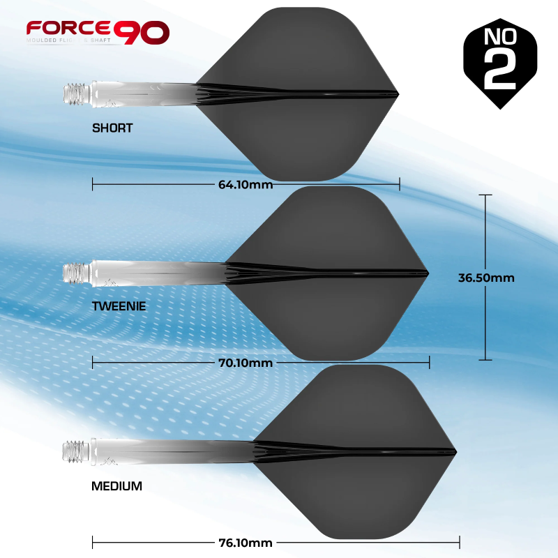 Mission Force 90 - ein voll integriertes Flight- und Schaftsystem! Hergestellt aus hochwertigen und langlebigen Materialien, behält der Force 90 immer einen perfekten 90-Grad-Winkel zwischen den Flügeln, was bei jedem Wurf eine konstante Flugbahn bietet.
